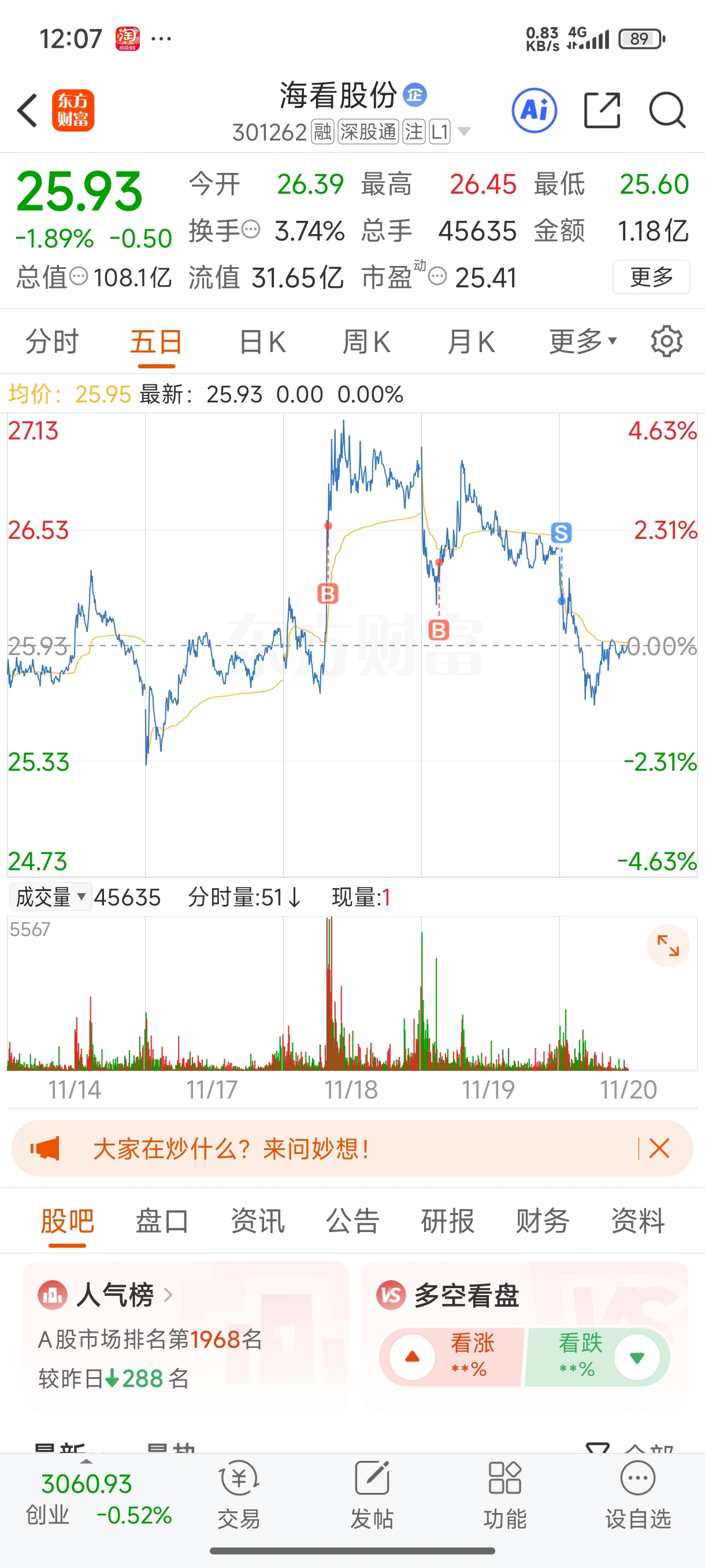 $海看股份(SZ301262)$ 以为你要启动了!