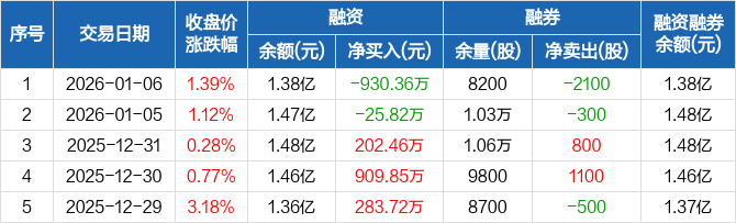 海看股份:融资净偿还930.36万元,融资余额1.38亿元(01-06)