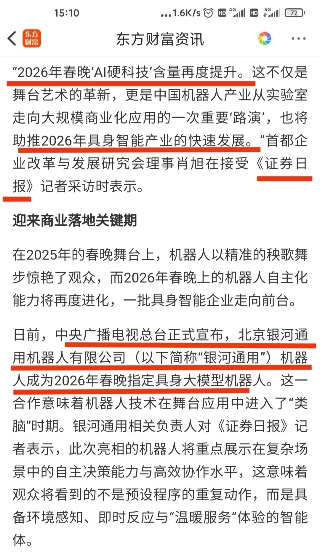 快去看银河通用机器人的wei.xin公众号,有详细介绍,太劲爆了,如不看,你肯定后悔的最劲爆消息!同时c.c.t.v宣布:银河通用和百达精工的人形机器人将在2026年春晚隆重亮相,百达精工盘小质优,该翻五倍以上!马斯克说,人形机器人就是无限印钞机,人形机器人才是人类的未来$长飞光纤(SH601869)$ $东方电气(SH600875)$