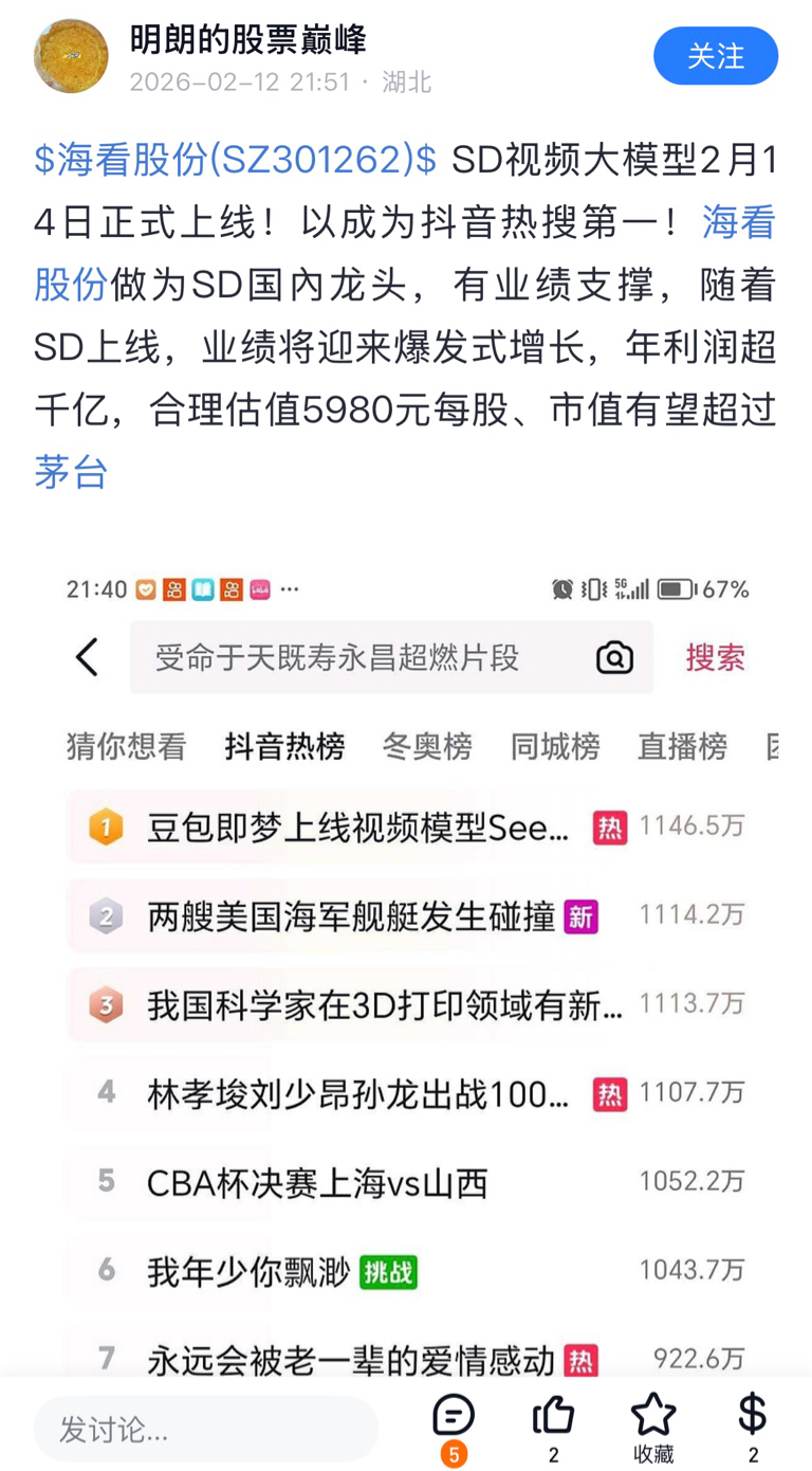 $海看股份(SZ301262)$ 感觉海看里的散户都疯魔了