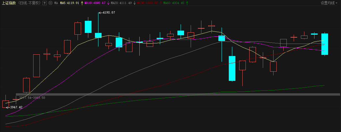 三大指数全跌了1个多点,沪指跌1.26%,收盘4082点,4100点关口没守住。创业板跌得最狠,1.57%。