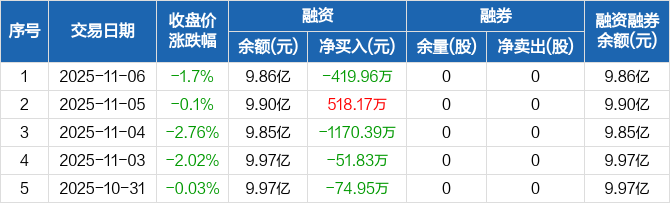 泰恩康:融资净偿还419.96万元,融资余额9.86亿元(11-06)