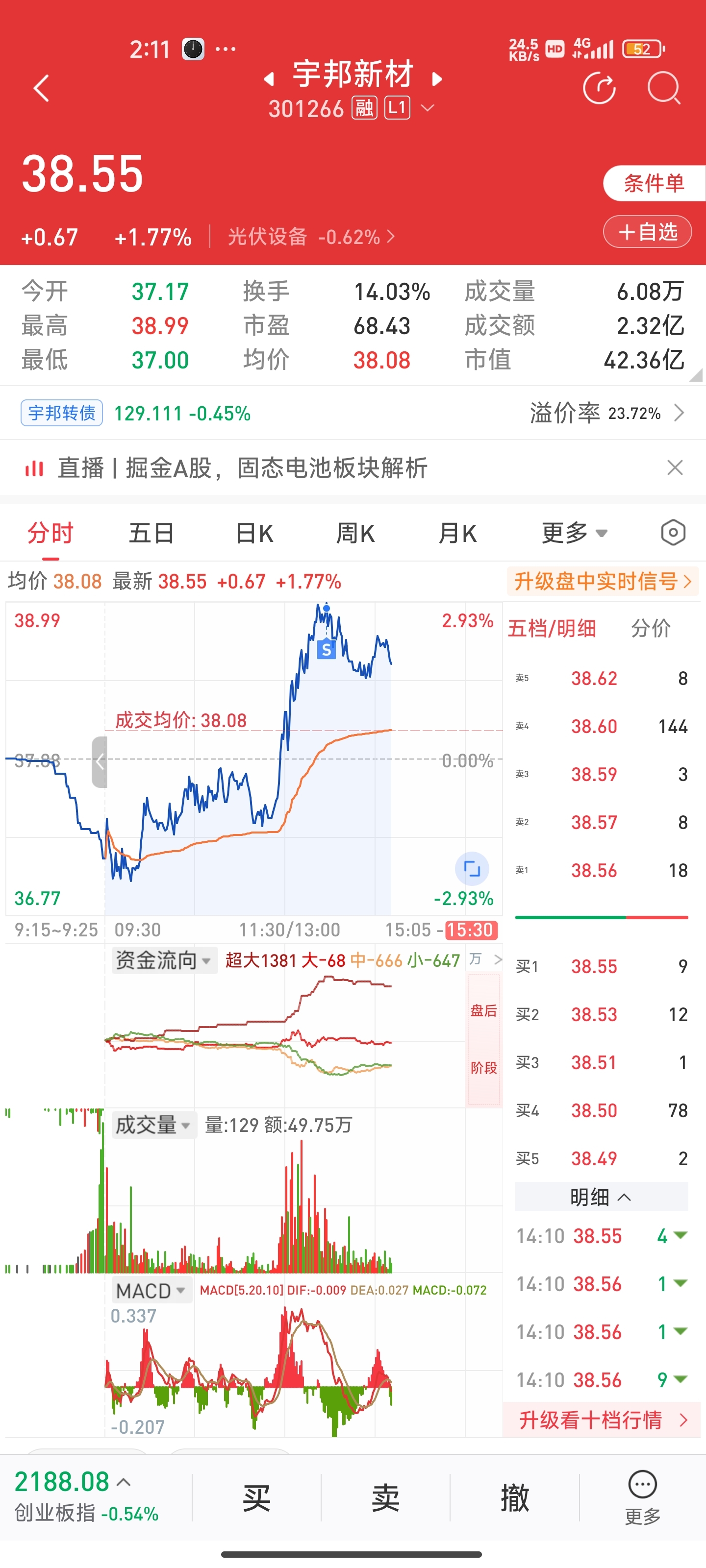$宇邦新材(SZ301266)$ 哈哈,15个点先止盈