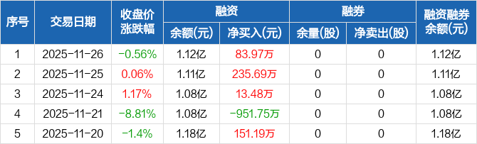宇邦新材:连续3日融资净买入累计333.14万元(11-26)