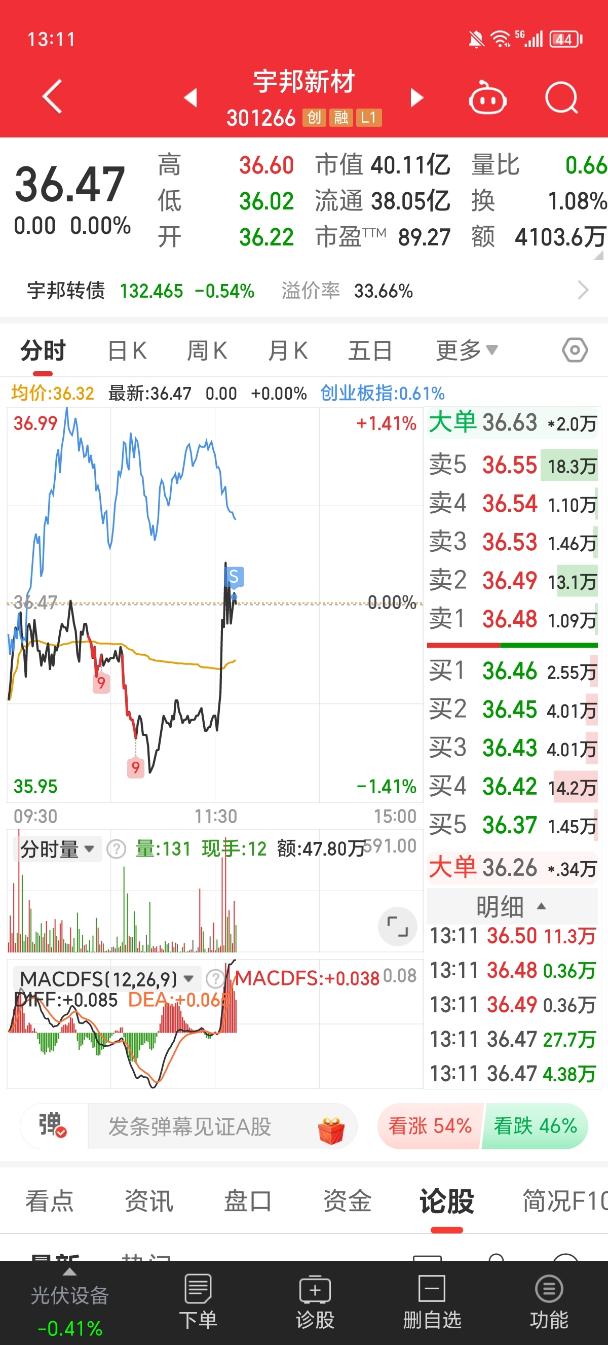 $宇邦新材(SZ301266)$ 谢谢主力 今天不用亏钱。开心了