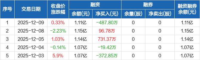宇邦新材:融资净偿还487.8万元,融资余额1.11亿元(12-09)