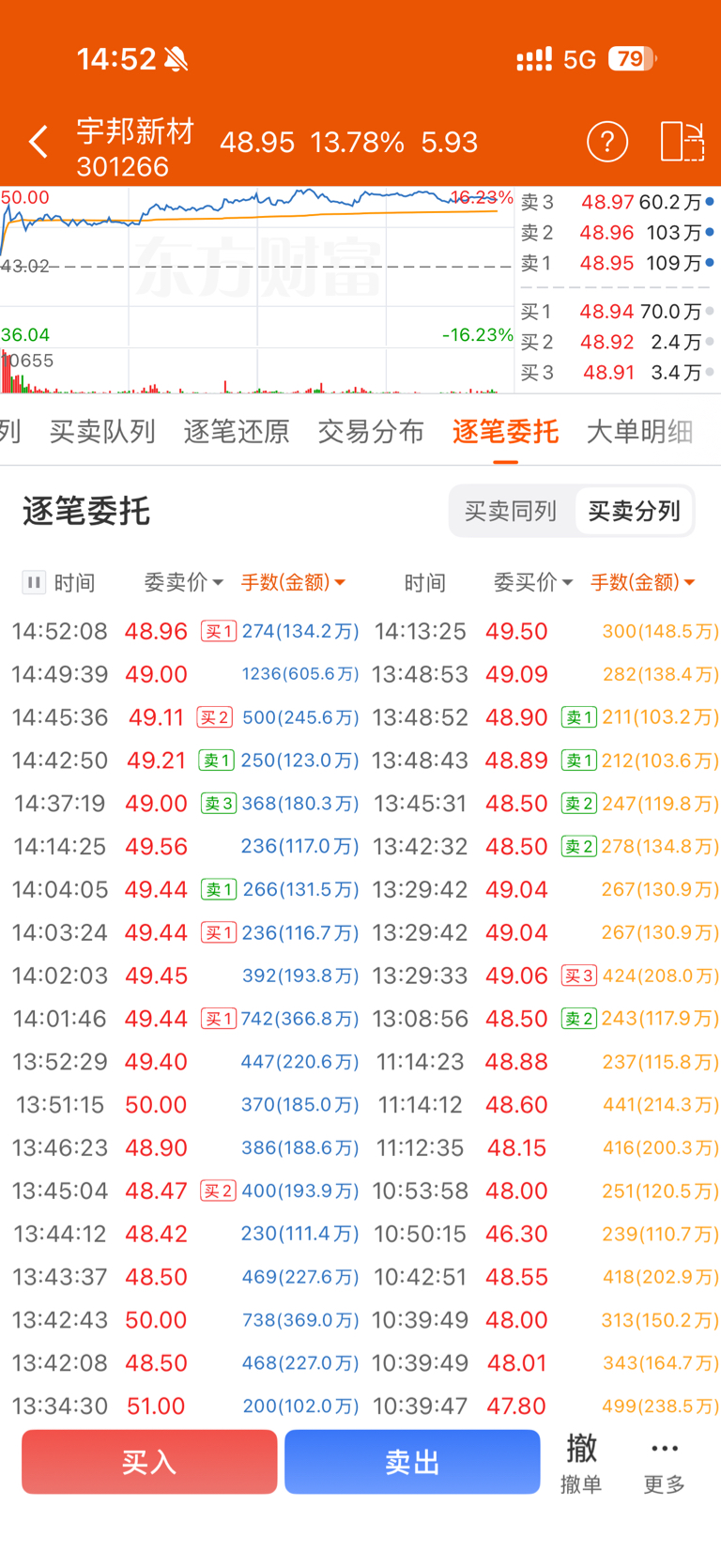$宇邦新材(SZ301266)$ 主力亮肌肉了,600万砸单