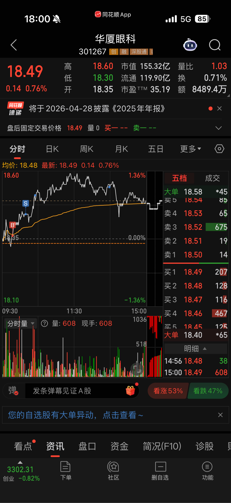 $华厦眼科(SZ301267)$ 冲高卖了,看明天主力怎么玩