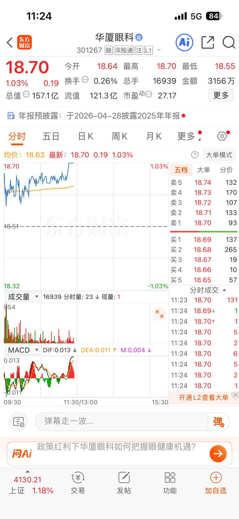 $华厦眼科(SZ301267)$ 还以为涨停了!