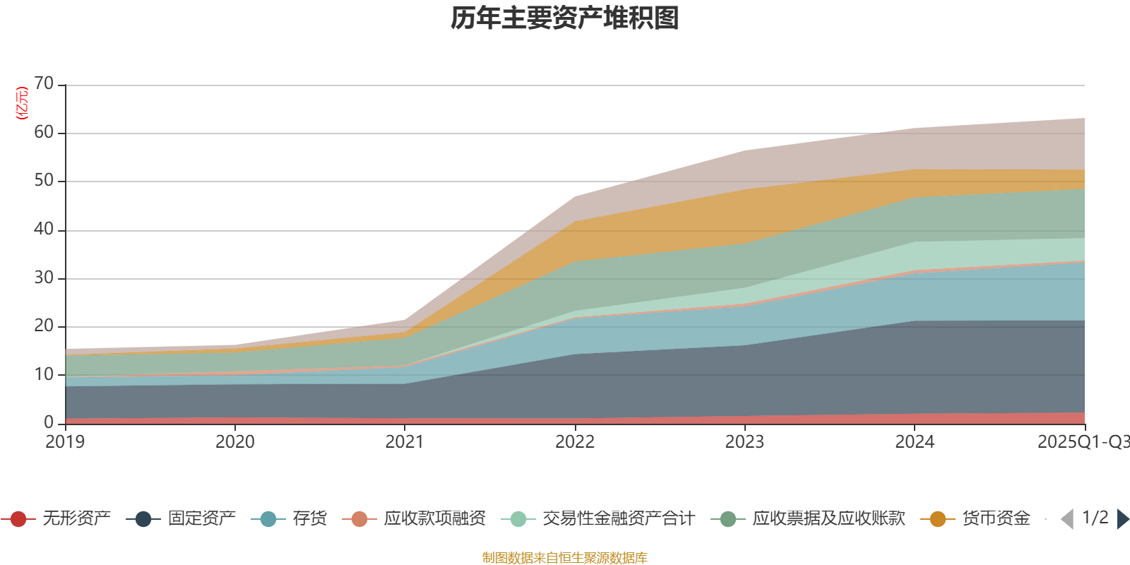 资产重大变化方面,截至2025年三季度末,公司货币资金较上年末减少31.74%,占公司总资产比重下降3.25个百分点;存货较上年末增加21.52%,占公司总资产比重上升2.82个百分点;交易性金融资产合计较上年末减少21.37%,占公司总资产比重下降2.3个百分点;其他非流动资产较上年末增加64.15%,占公司总资产比重上升1.39个百分点。