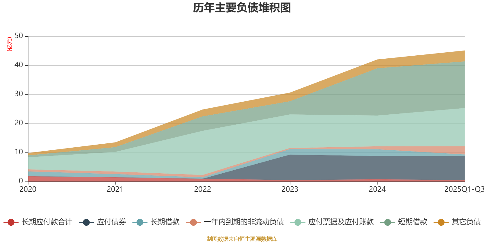 负债重大变化方面,截至2025年三季度末,公司应付票据及应付账款较上年末增加23.79%,占公司总资产比重上升3.42个百分点;长期借款较上年末减少76.82%,占公司总资产比重下降2.96个百分点;一年内到期的非流动负债较上年末增加178.77%,占公司总资产比重上升2.85个百分点;短期借款较上年末减少1.14%,占公司总资产比重下降1.17个百分点。