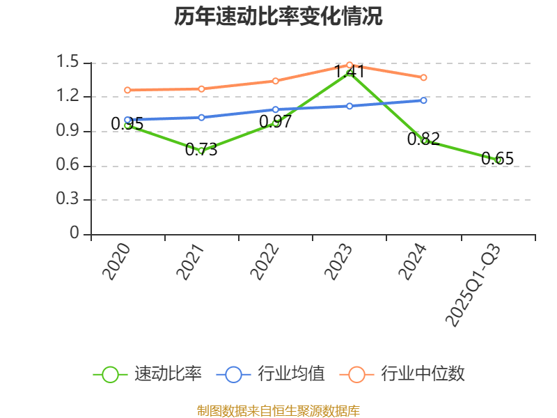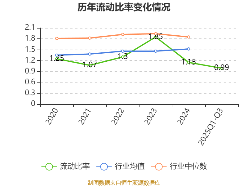 2025年前三季度,公司流动比率为0.99,速动比率为0.65。