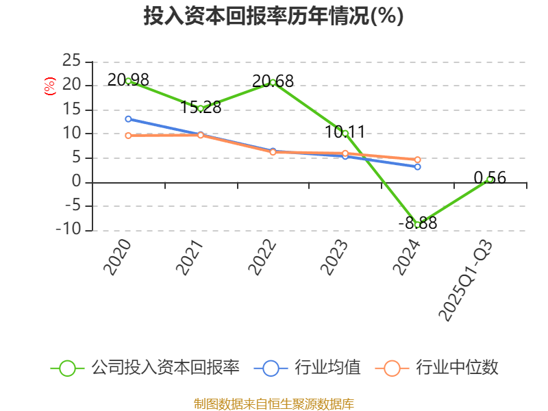 盈利能力方面, 2025年前三季度公司加权平均净资产收益率为-1.95%,同比上升1.96个百分点。公司2025年前三季度投入资本回报率为0.56%,较上年同期上升1.49个百分点。