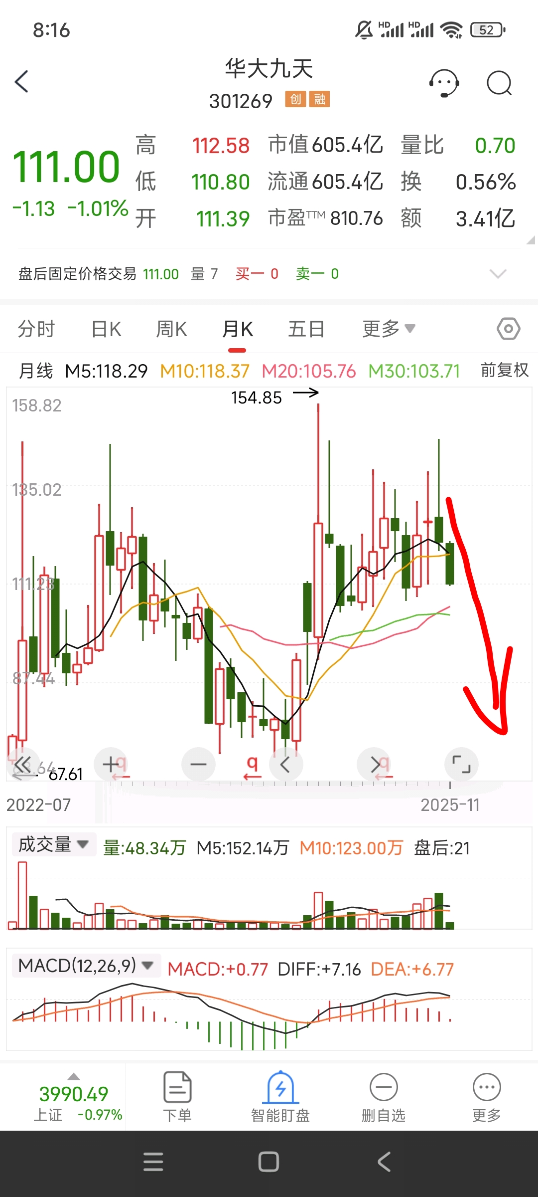 $华大九天(SZ301269)$ 我总有一种不详的预感,总觉得这次是月线级别的调整,而且是刚刚开始,未来保守估计6个月以内都是跌,股价80左右,很有可能,拭目以待吧