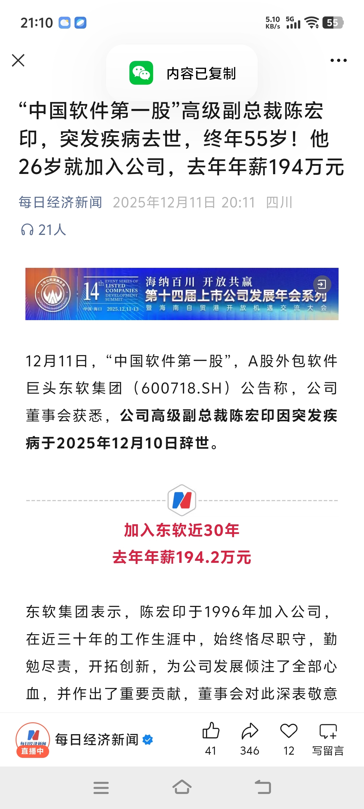 “中国软件第一股”高级副总裁陈宏印,突发疾病去世,终年55岁!看来软件行业不容易