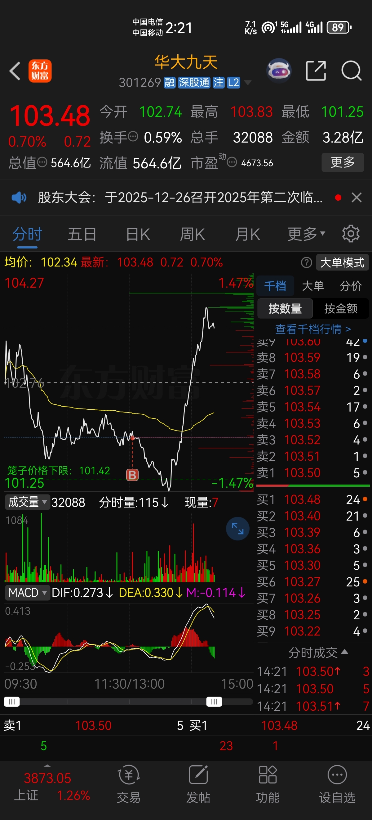 $华大九天(SZ301269)$ 101.2的一单没成交,可惜了