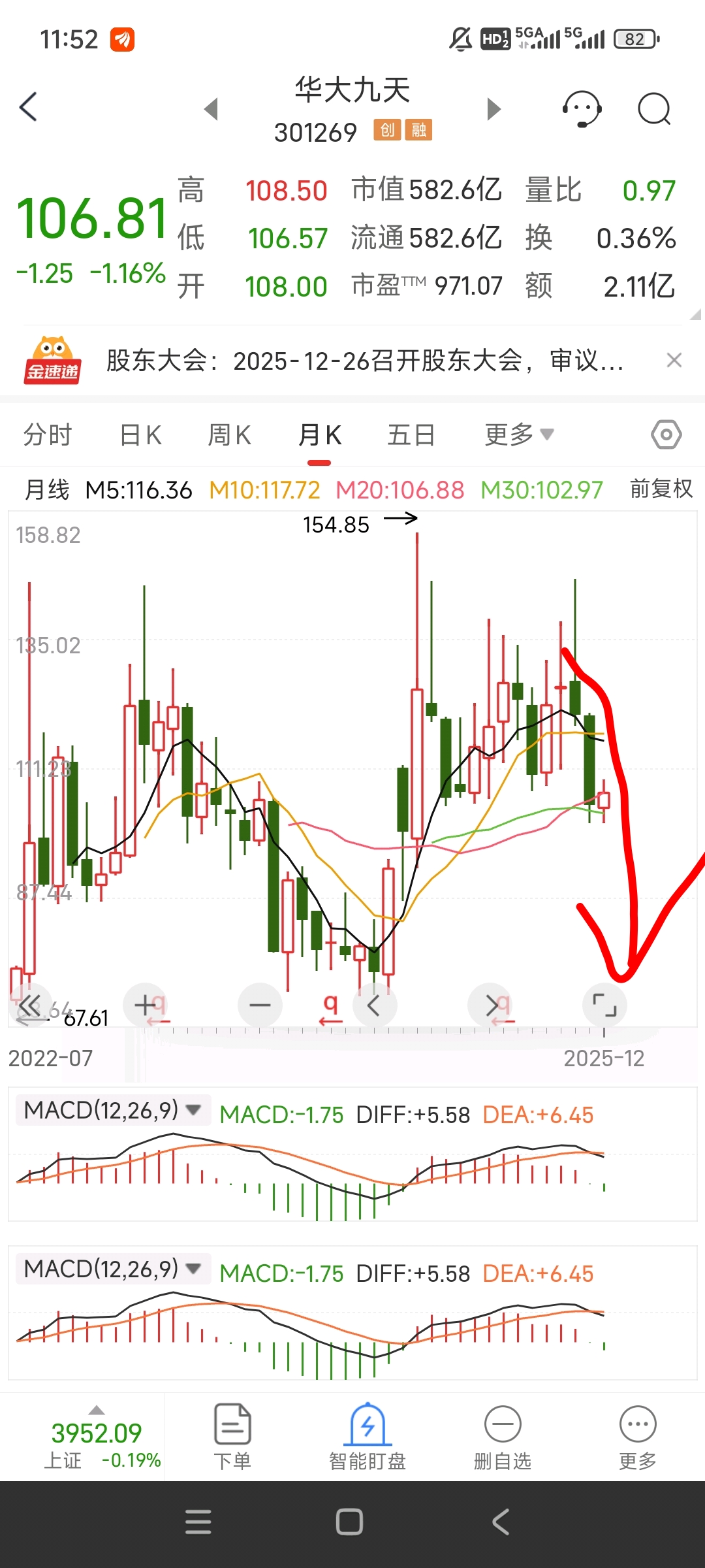 $华大九天(SZ301269)$ 比股月线向下,反弹动能不足,必然深蹲!!!绝不可买!!!千万别被忽悠接盘!!!