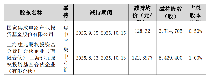 读创财经注意到,华大九天此前已披露过大基金与上海建元减持情况。2025年10月15日,华大九天公告,公司持股5%以上股东大基金、上海建元的减持计划已实施完毕。大基金于9月15日-10月15日通过集中竞价方式减持271.47万股,占公司总股本的0.5%;上海建元于8月13日-10月13日通过集中竞价方式减持542.94万股,占公司总股本的1%。根据公告所附数据(见下表)计算可知,两公司合计套现约10亿元。