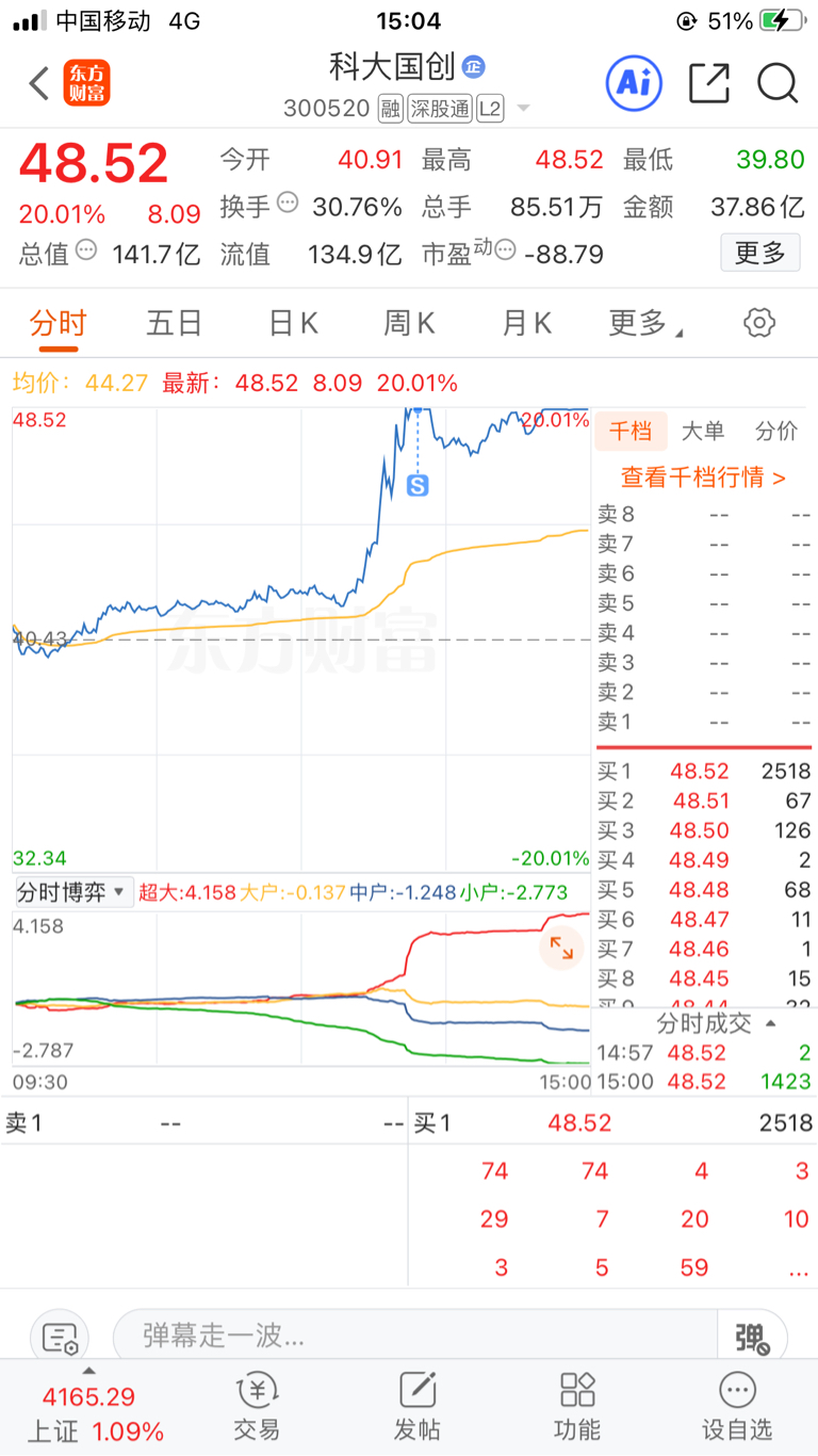 鸡哥今天清仓科大抄底华大,毕竟对华大九天还是有感情的,今天要不是受减持影响,至少