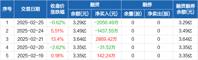 汉仪股份:融资净偿还2050.49万元,融资余额3.29亿元(02-25)