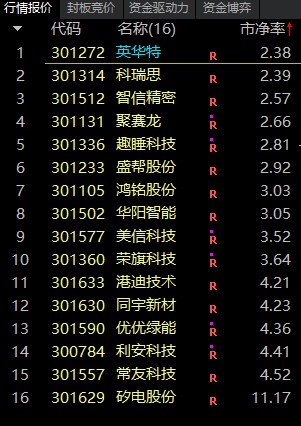 创业板总股数6千万以下的有16只股,市净率这厮最低