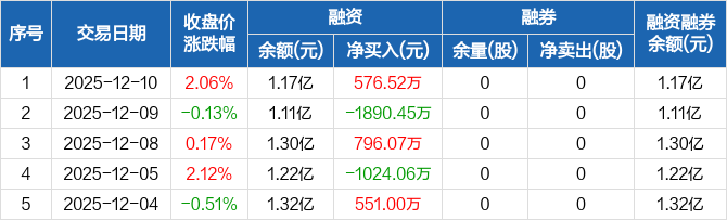 汉朔科技:融资净买入576.52万元,融资余额1.17亿元(12-10)