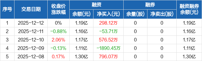 汉朔科技:融资净买入298.12万元,融资余额1.19亿元(12-12)
