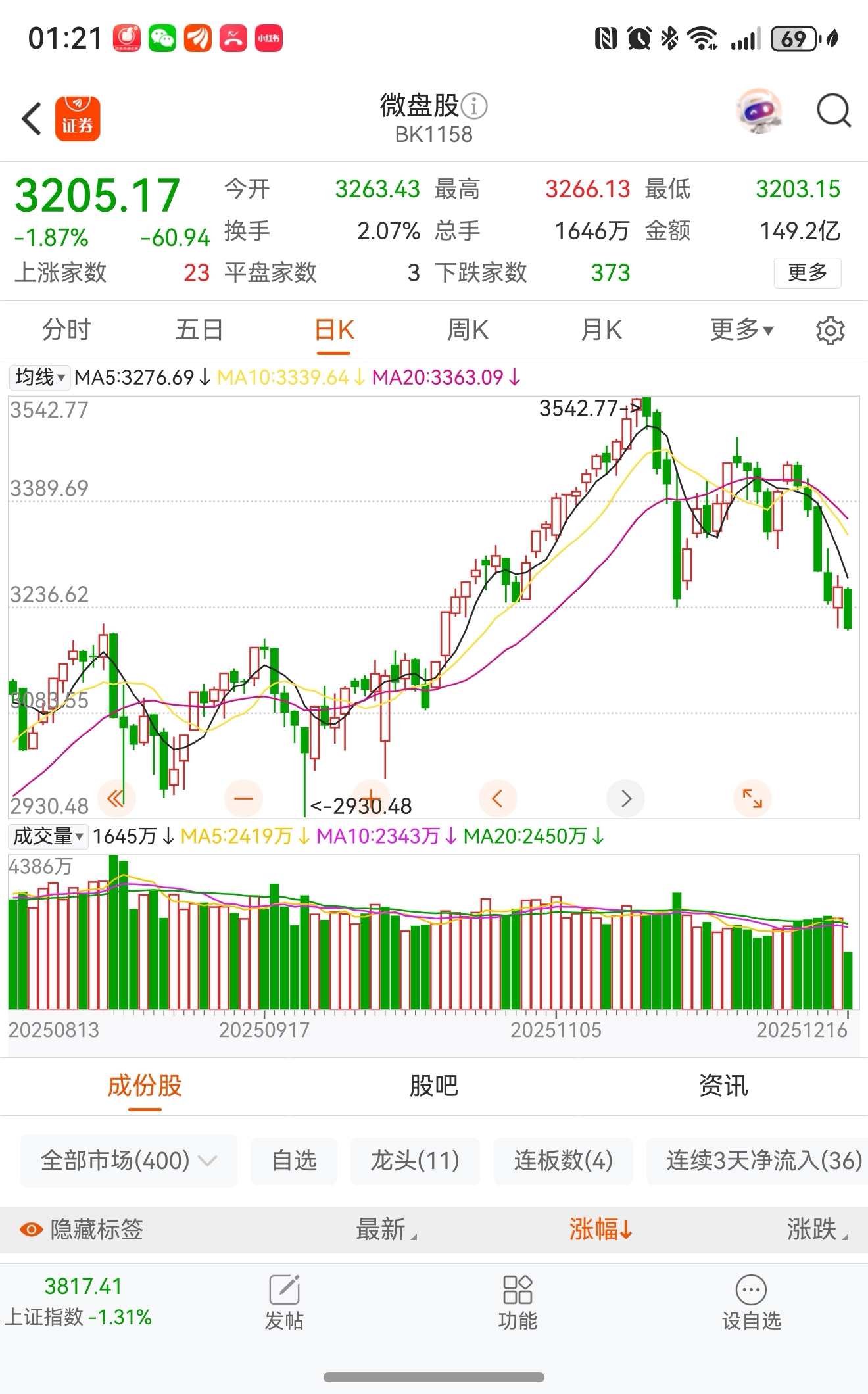 看看微盘股板块弱得一匹!你还在幻想个啥!
