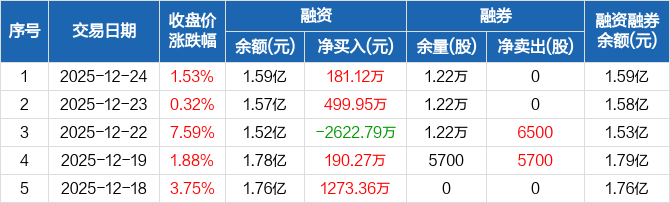 嘉曼服饰:融资净买入181.12万元,融资余额1.59亿元(12-24)