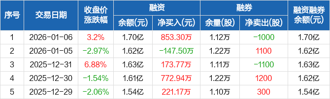 嘉曼服饰:融资净买入853.3万元,融资余额1.7亿元(01-06)