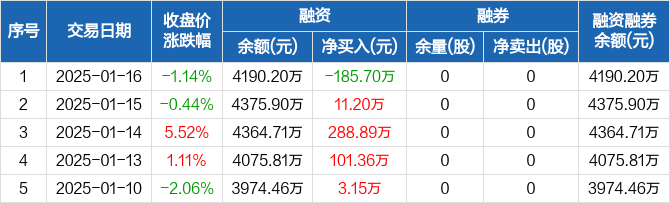 金道科技:融资净偿还185.7万元,融资余额4190.2万元(01-16)