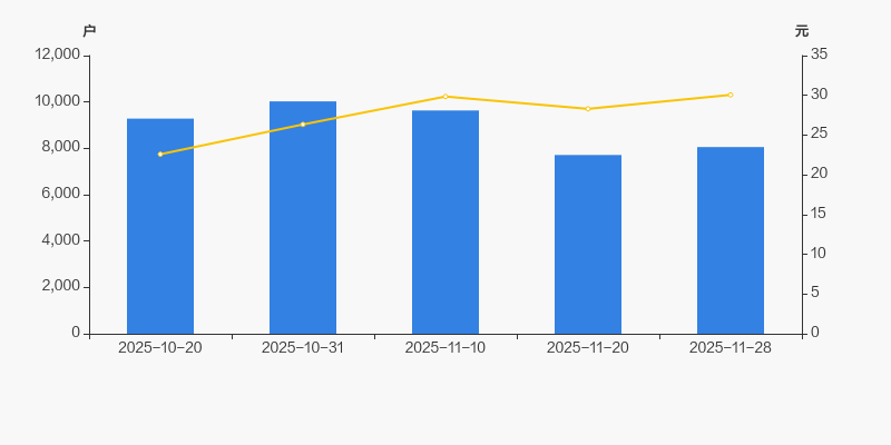 2025年10月20日至今,公司股东户数显著下降,区间跌幅为13.23%。2025年10月20日至2025年11月28日区间股价上涨33.07%。