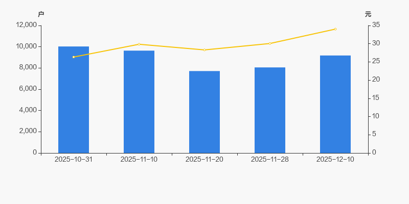 2025年10月31日至今,公司股东户数有所下降,区间跌幅为8.46%。2025年10月31日至2025年12月10日区间股价上涨29.12%。