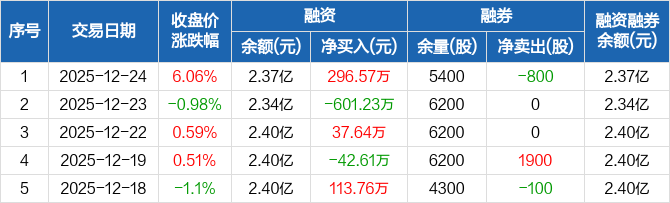 珠城科技:融资净买入296.57万元,融资余额2.37亿元(12-24)