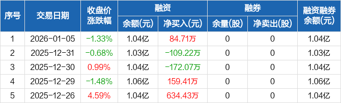 科源制药:融资净买入84.71万元,融资余额1.04亿元(01-05)