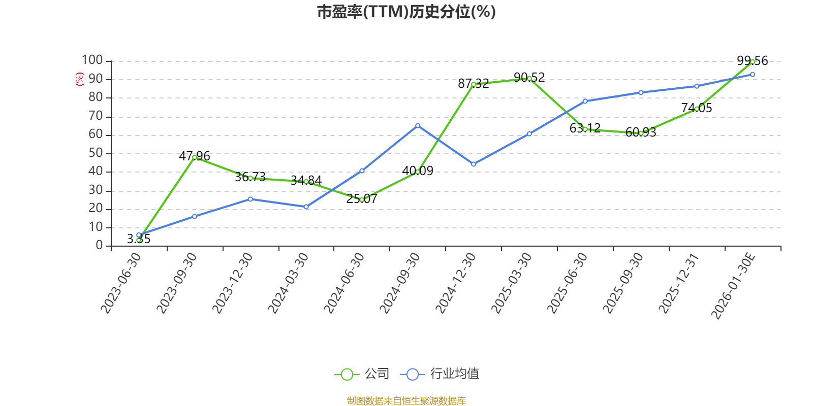 市盈率、市净率为负时,不显示当期分位数,会导致折线图中断。