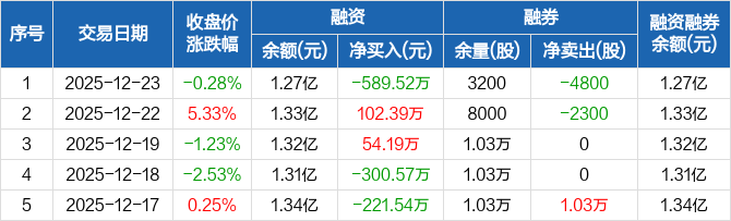金禄电子:融资净偿还589.52万元,融资余额1.27亿元(12-23)