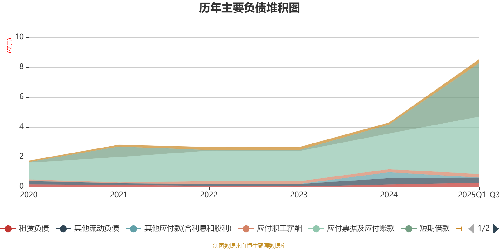 负债重大变化方面,截至2025年三季度末,公司短期借款较上年末增加503.58%,占公司总资产比重上升11.31个百分点;应付票据及应付账款较上年末增加60.72%,占公司总资产比重上升3.04个百分点;其他应付款(含利息和股利)较上年末减少97.64%,占公司总资产比重下降2.03个百分点;其他流动负债较上年末减少17.81%,占公司总资产比重下降0.78个百分点。