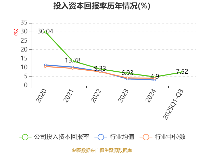 盈利能力方面, 2025年前三季度公司加权平均净资产收益率为9%,同比上升4.69个百分点。公司2025年前三季度投入资本回报率为7.52%,较上年同期上升3.41个百分点。