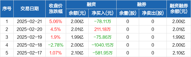 鸿日达:融资净偿还78.11万元,融资余额2亿元(02-21)