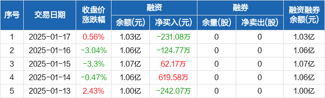 侨源股份:融资净偿还231.08万元,融资余额1.03亿元(01-17)