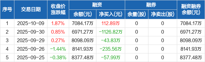 侨源股份:融资净买入112.89万元,融资余额7084.17万元(10-09)