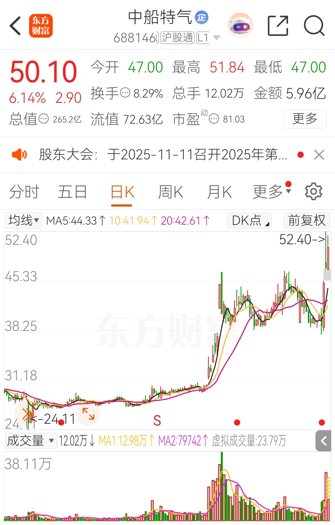 $侨源股份(SZ301286)$ 工业气体风水轮流转……中船又创新高
