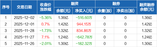 侨源股份:融资净偿还516.6万元,融资余额1.36亿元(12-02)