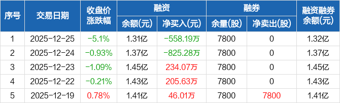 侨源股份:融资净偿还558.19万元,融资余额1.31亿元(12-25)