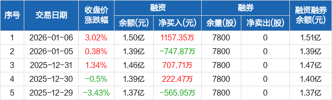 侨源股份:融资净买入1157.35万元,融资余额1.5亿元(01-06)