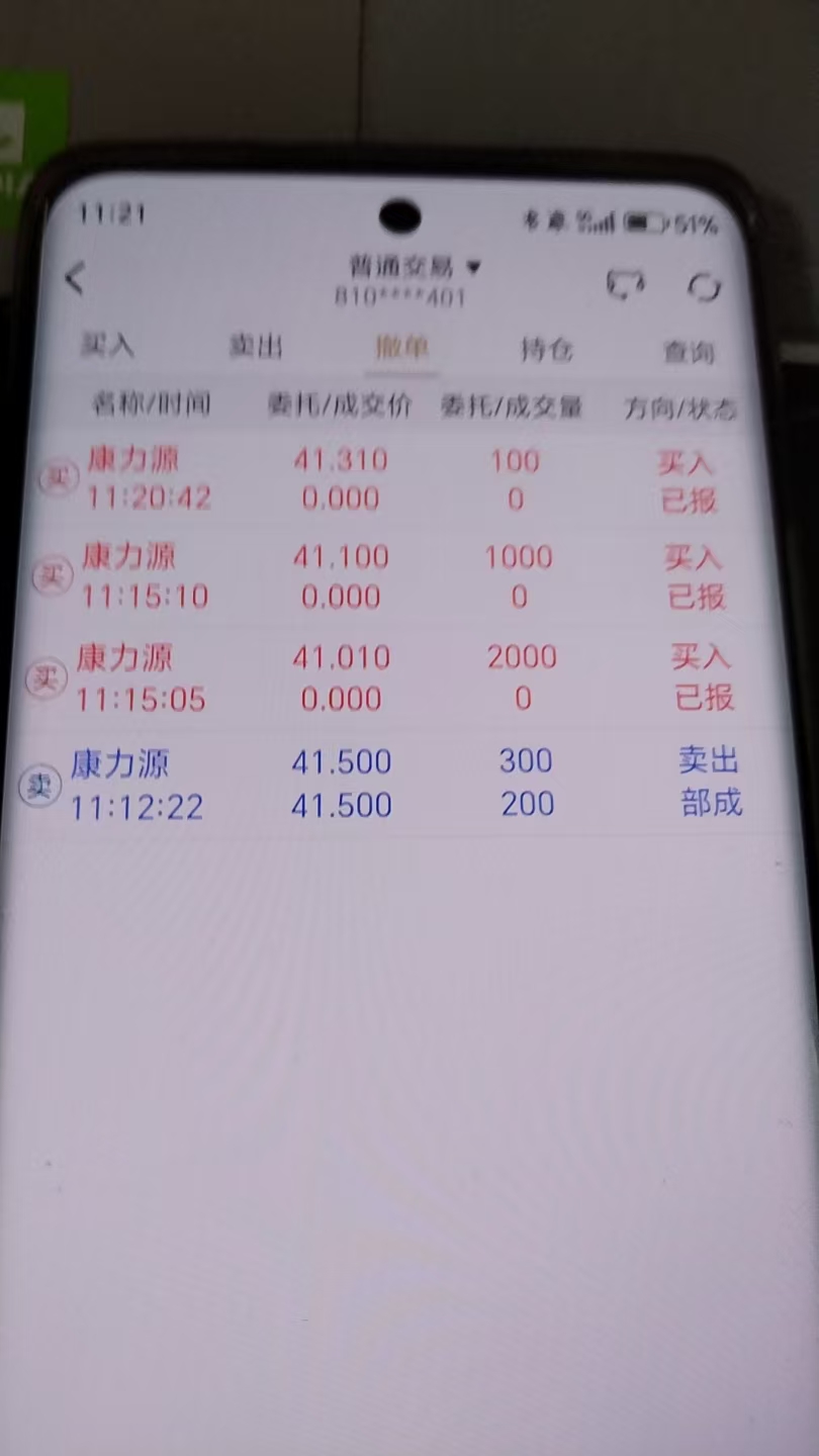 康力源上41.5我就清了破41我买一点单子挂上了卖单41.5排队以后永远