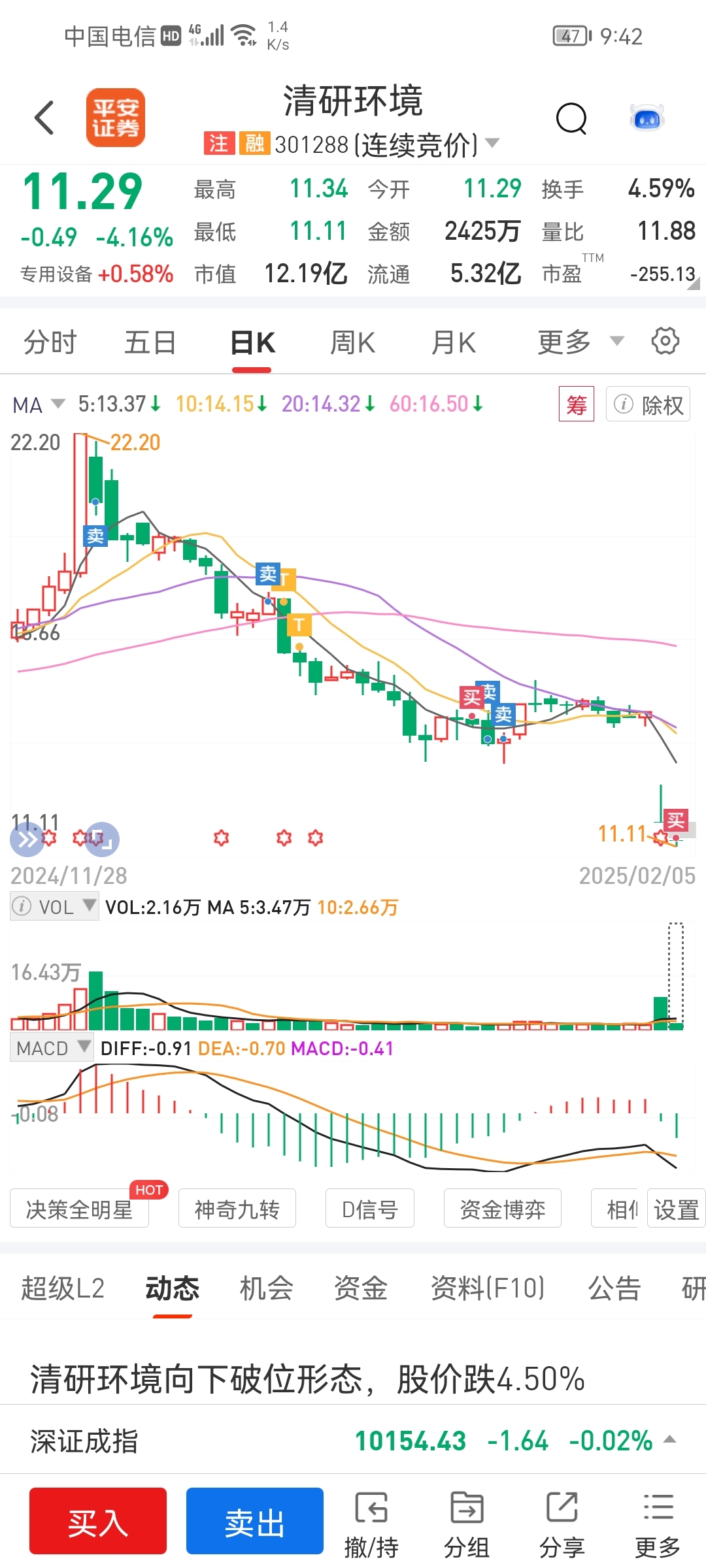 $清研环境(SZ301288)$ 11.33又再次入坑了,天真的我以为双十一底