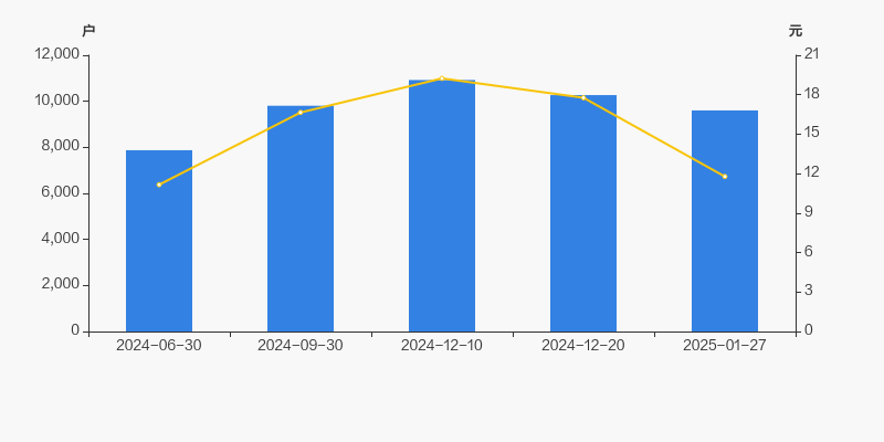 2024年6月30日至今,公司股东户数显著增长,区间涨幅为21.96%。2024年6月30日至2025年1月27日区间股价上涨5.56%。