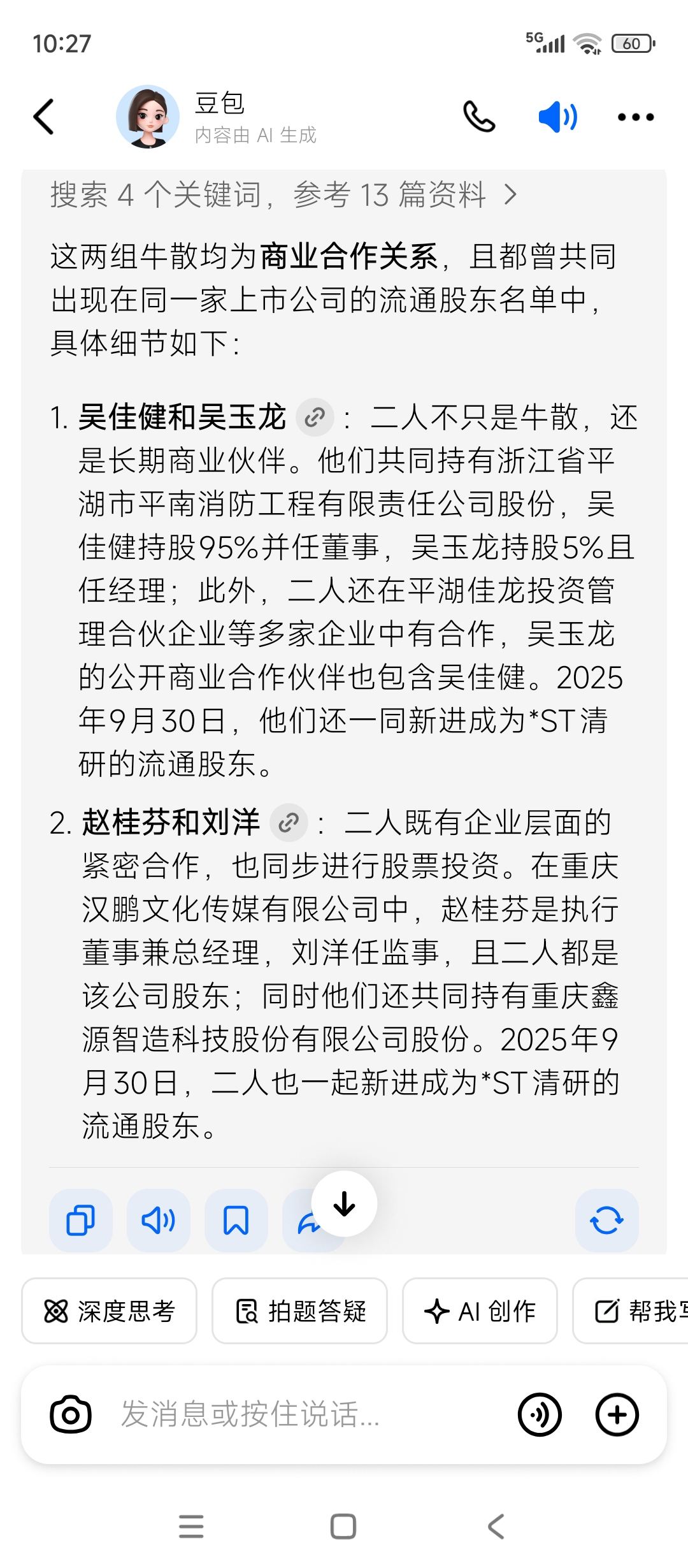 $*ST清研(SZ301288)$ 二组牛散(共4人)进入前十大流通股股东名册。